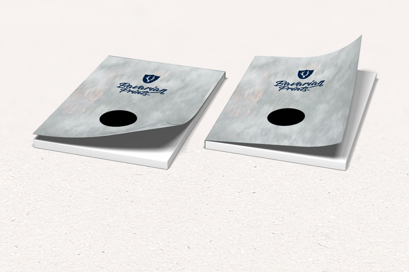 Deckblatt rückseitg verklebt, optional an der kurzen Seite (Kopf) oder an der langen Seite (links)